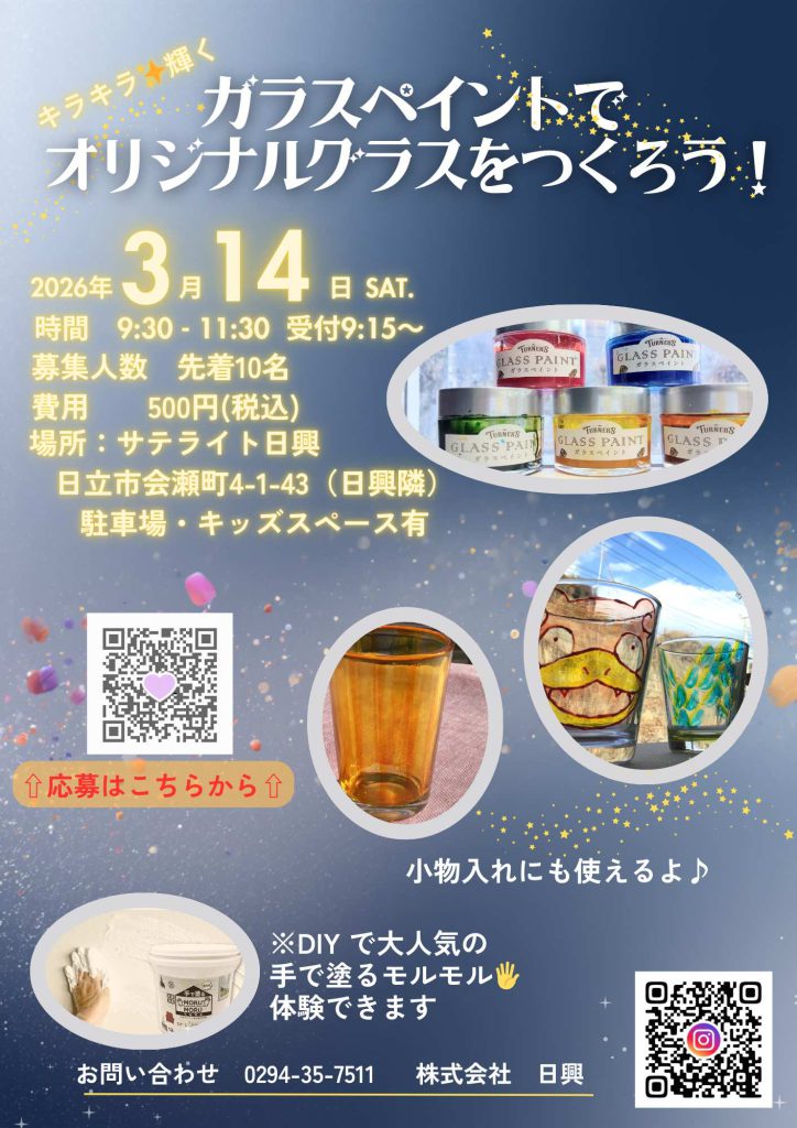 ※当日は塗料を使うので汚れてもよい服装でお越しください。